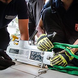 Weiter ging es heute mit einer Auffrischung im Umgang mit dem Mehrzweckzug und den Möglichkeiten der Schachtrettung.