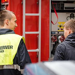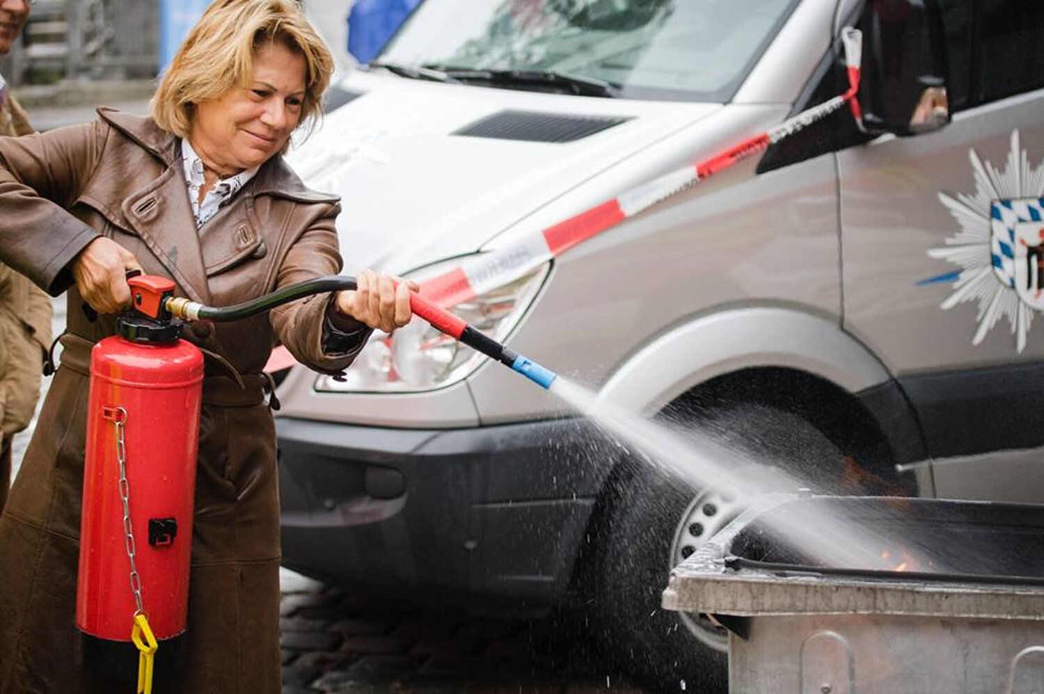 Beim Isarinselfest konnten sich die Besucher am Stand der Freiwillige Feuerwehr München im Umgang mit dem Feuerlöscher vertraut machen und sich über die Feuerwehr selbst informieren.