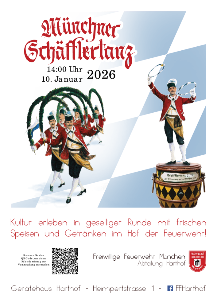 Der alten Münchner Tradition folgend, kommen die Schäffler am 10. Januar zu uns zu Besuch in den Harthof.