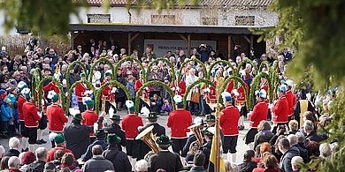 | Der alten Münchner Tradition folgend, kommen die Schäffler am 10. Januar zu uns zu Besuch in den Harthof.